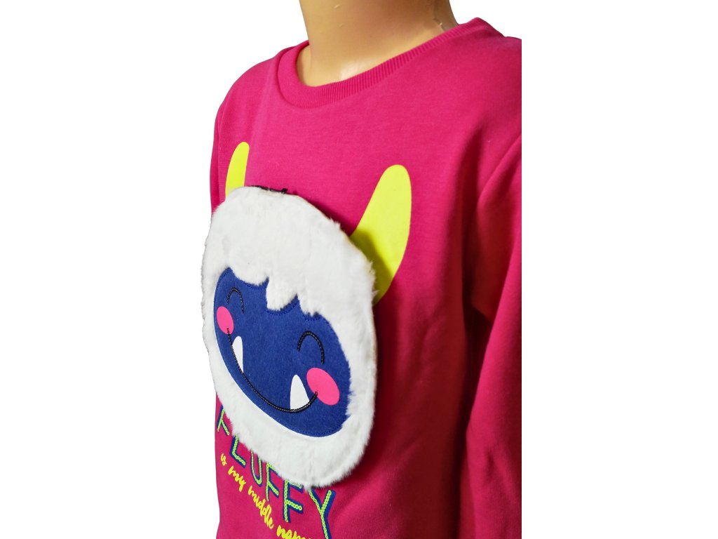Luxusní mikina Fluffy, kterou děti nebudou chtít odložit. Jedinečná mikina pro holky, které milují chlupáčky. Mikina má 3D chlupatého Fluffyho, který je přichycen suchými zipy na předním dílu a lze jej jednoduše odepnout a sundat. Tato jedinečná mikina je materiálově velmi příjemná, heboučká, rukávy jsou ukončeny do pružných neškrtících manžet.