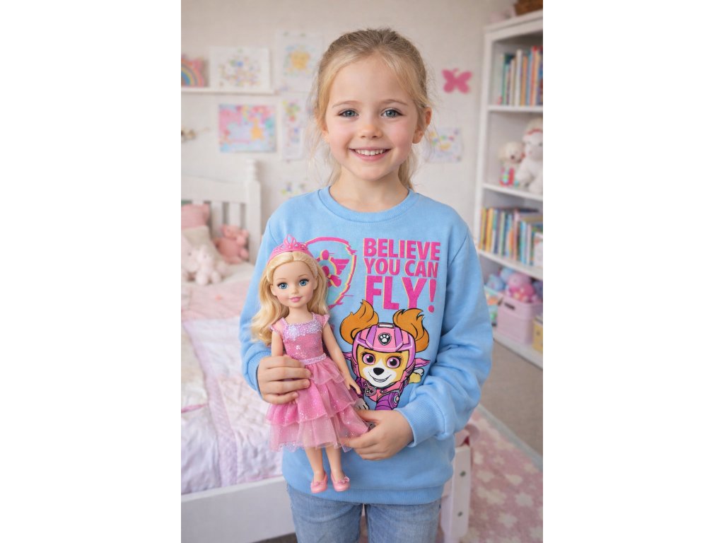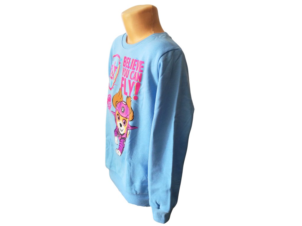 Moc krásná mikina Paw Patrol v sympatické modré barvě. Mikina je krásně hřejivá, z rubové strany má jemný chloupek, který zajistí teplíčko, ukončení je do pružných manžet a motiv se záchranářkou Skye je třešničkou na dortu. Holky tuto mikinu milují .