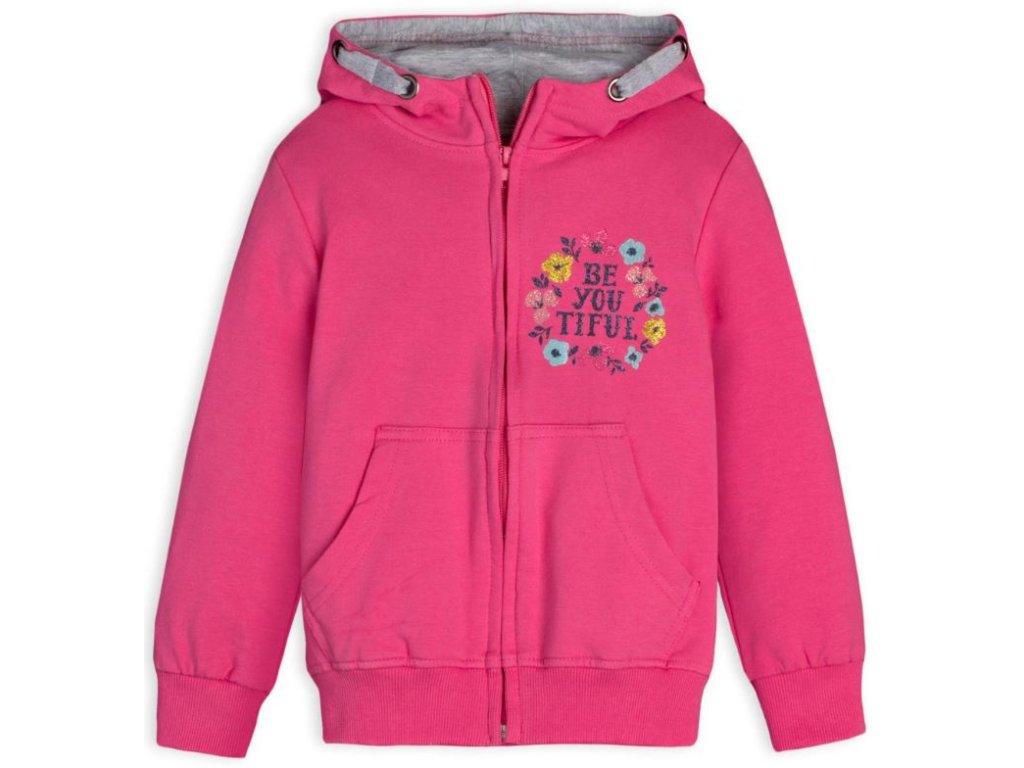 Dívčí mikina v sladce růžovém provedení, vhodná pro jaro, podzim i zimu.