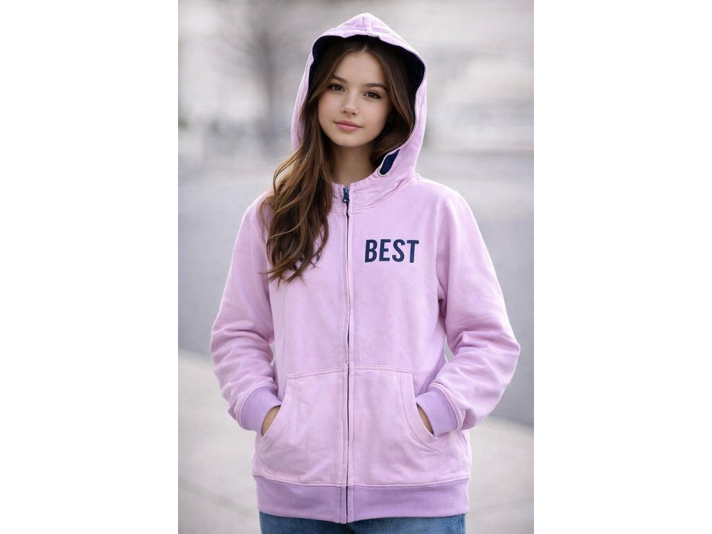 Velmi kvalitní a pohodlná bavlněná mikina Venere, kterou holky využijí po celý rok. Mikina má nádhernou jemně růžovou barvu, zapínání na zip, kapucu a břišní kapsy. Ukončení je...