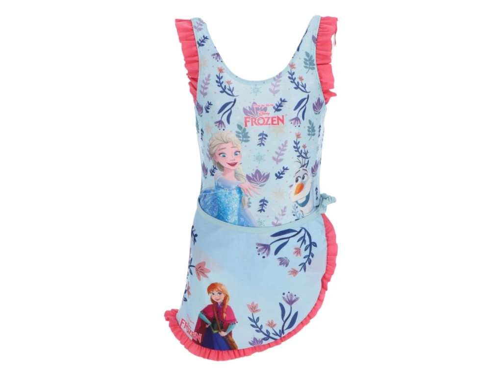 Jednodílné plavky zdobí Elsa a Olaf, zatímco lehký sarong s Annou doplňuje celý set a dodává mu hravý nádech. Díky pružnému materiálu se plavky dobře přizpůsobí postavě a umožní pohodlný pohyb při plavání i hrách u vody.