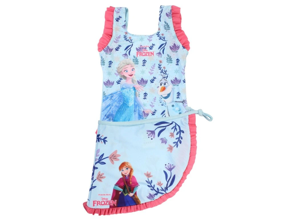 Dívčí plavky jednodílné FROZEN s plážovým sarongem modré velikost 98/104