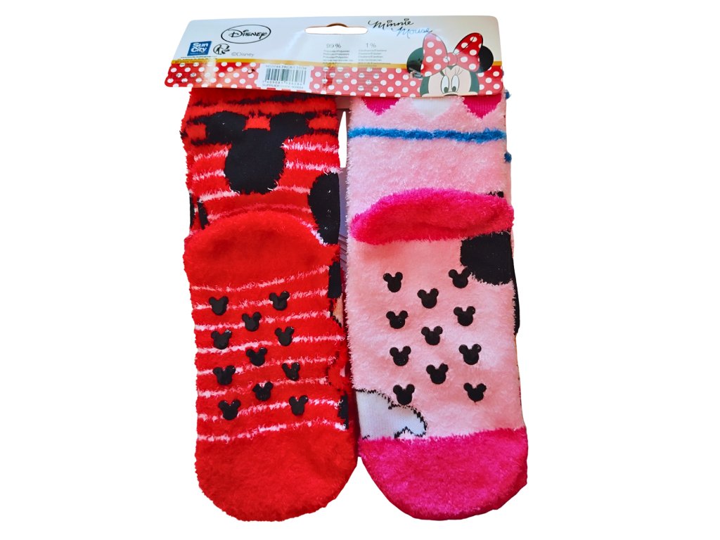Úžasné chlupaté ponožky Minnie pro super pohodlíčko do chladných a mrazivých dnů. V balení jsou dva páry v červené a růžové barvě. Ponožky Minnie jsou krásně pružné, příjemně hřejivé, ze spodní strany mají protiskluz.