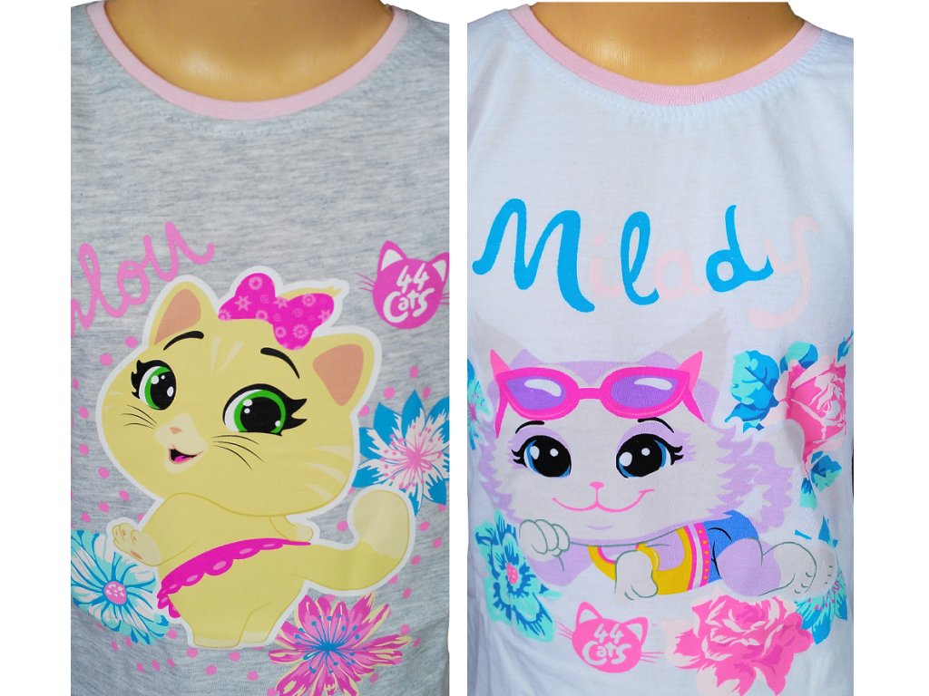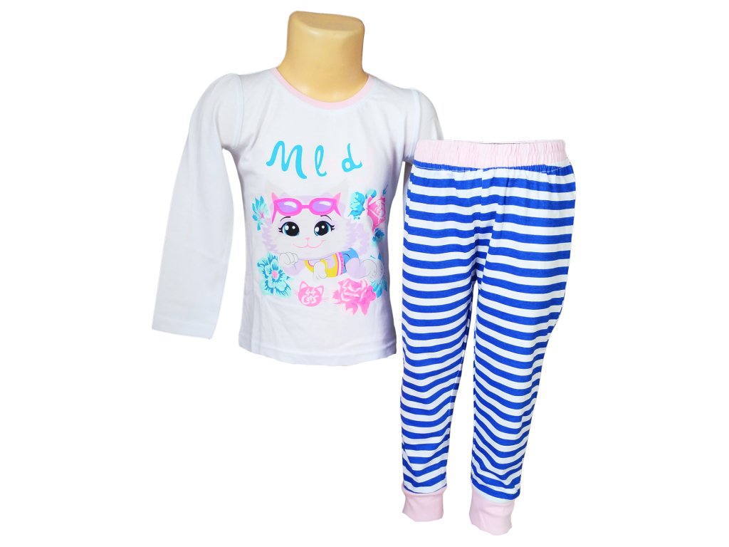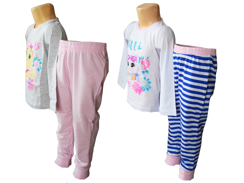 Velmi příjemné bavlněné pyžamo s krásným motivem kočiček. Pyžamo slibuje velmi pohodlný spánek, plný krásných pohádkových snů. Bílá varianta má motiv celolátkový. Pyžama mají ukončení nohavic do pružných manžet a pružná příjemná guma je i v pase.