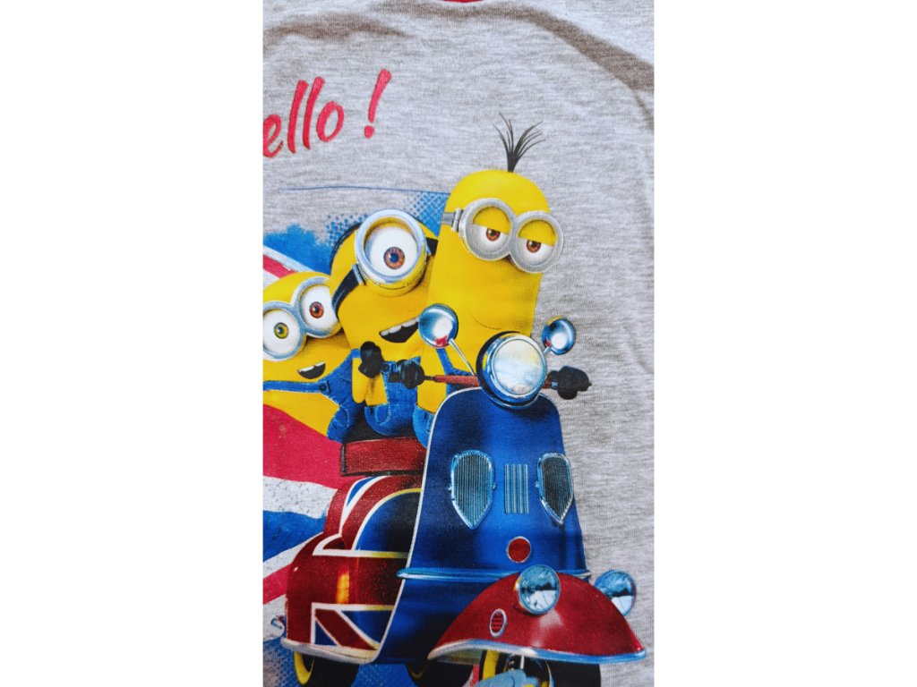 Dětské pyžamo s oblíbeným motivem Mimoni. Přední díl je přizdoben třpytkami. Nohavičky jsou ukončeny pružnými manžetami.