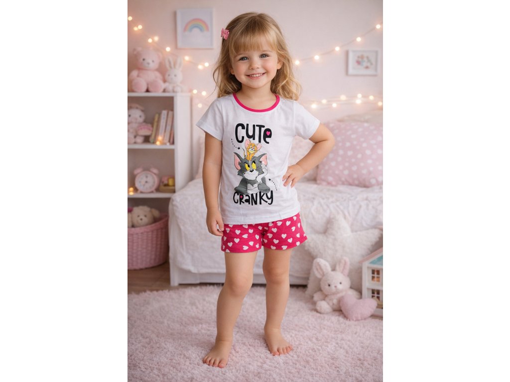 Pyžamo TOM A JERRY krátké dívčí bílorůžové