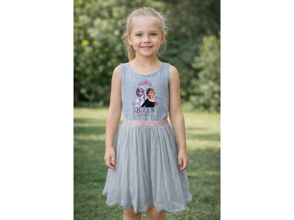 Dívčí šaty FROZEN ANNA A ELSA luxusní s tylem šedé