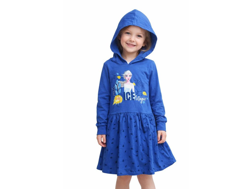 Dívčí šaty FROZEN dlouhý rukáv s kapucou bavlna