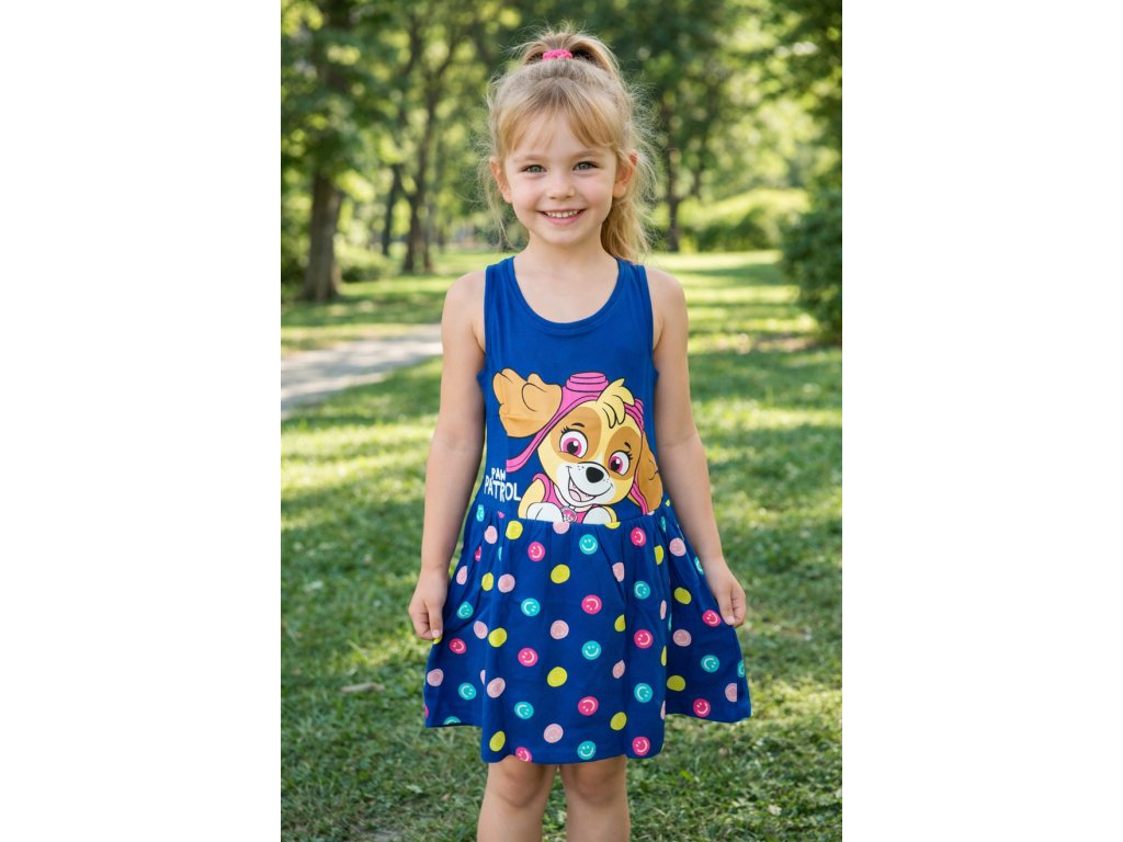 Dívčí šaty TLAPKOVÁ PATROLA SKYE se smajlíky modré