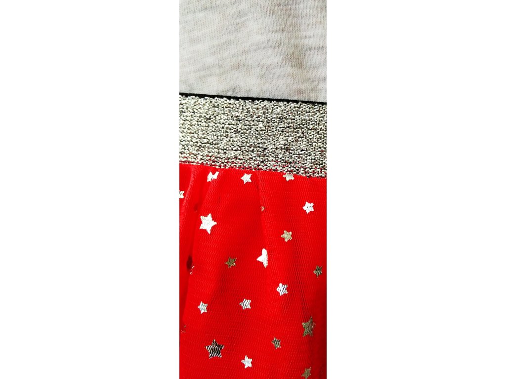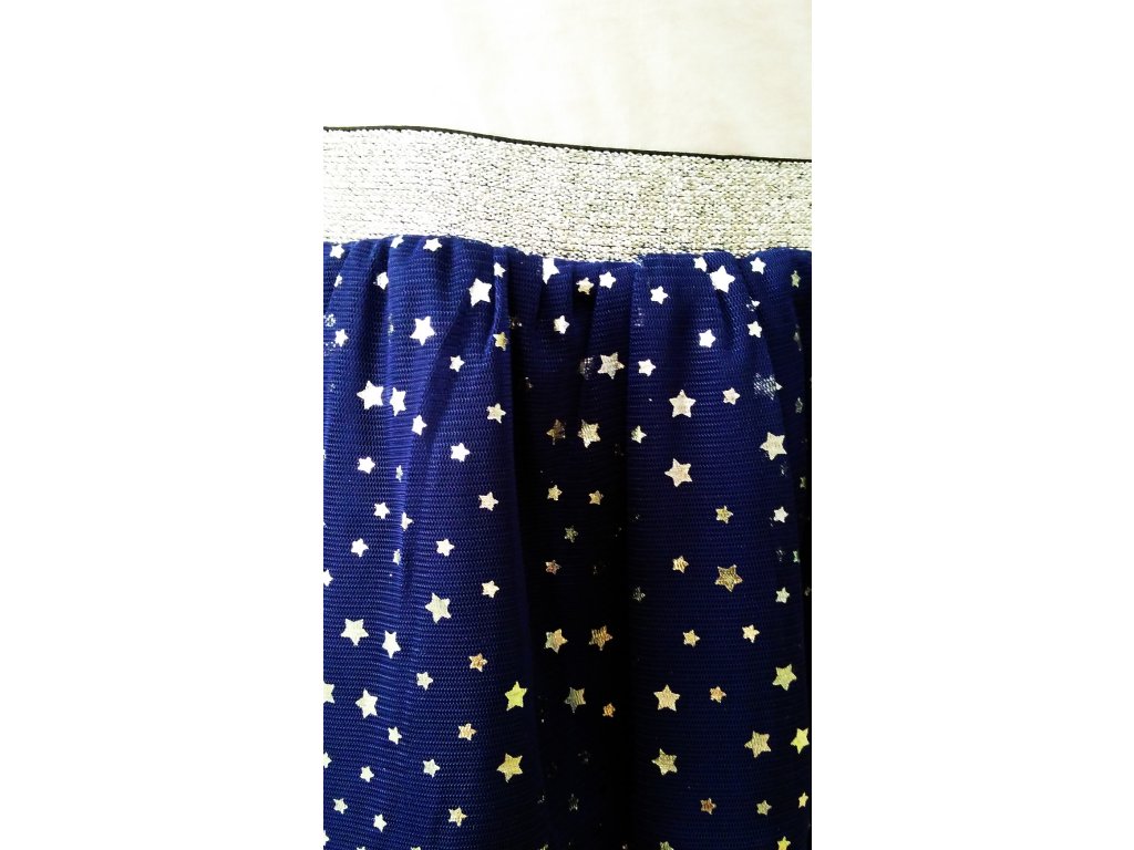 Nádherné a velmi slušivé šaty, příjemný materiál a pohodlný střih, sukně doplněna vrchní jemnou tylovou vrstvou s třpytivými hvězdami. Přizdobeny i lurexovou gumou v pase