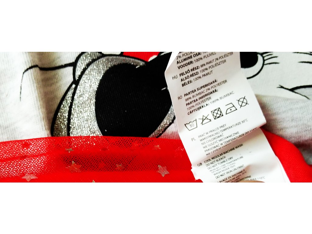 Velmi příjemné bavlněné pyžamko s krásným a oblíbeným motivem myšky Minnie. Obrázky jsou nádherné, látkové, se sytými barvami. V pase je pyžamko pohodlné a super pružné.