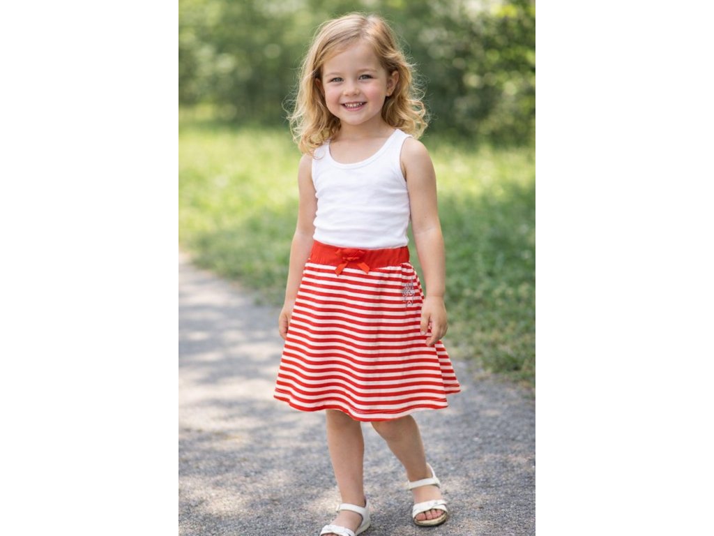 Stylová dívčí sukně s červenobílými proužky je skvělou volbou pro každodenní nošení i slavnostnější příležitosti. Velmi pohodlný a líbivý střih krásně sedí na postavě a díky splývavému materiálu působí lehce a vzdušně. A pozor – proužků není nikdy dost!