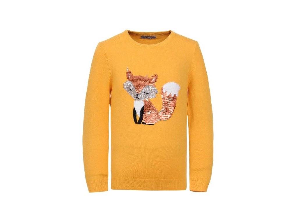 Dívčí svetr GLO-STORY LIŠKA s měnícími flitry žlutý