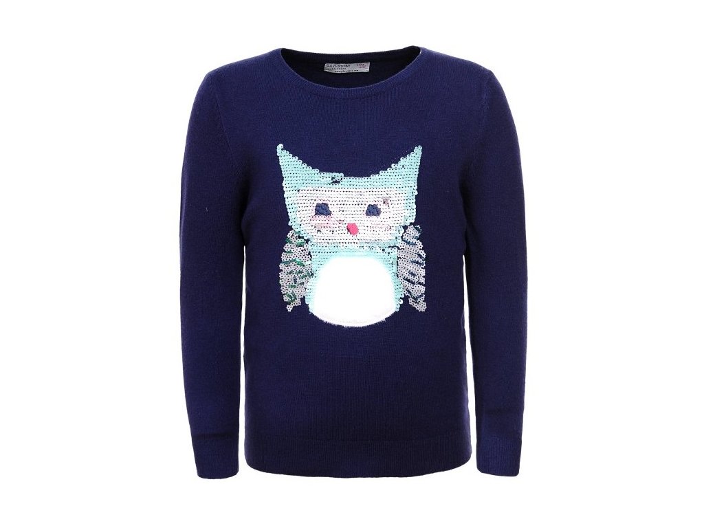 Dívčí svetr GLO-STORY SOVA s flitry tmavě modrý