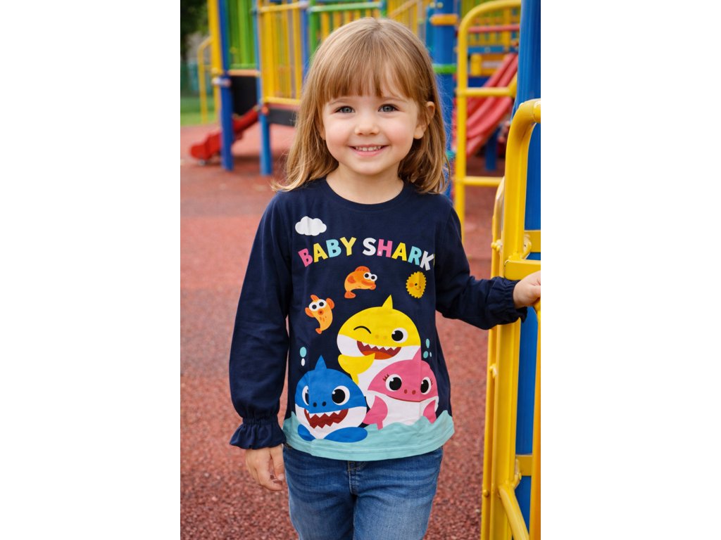 Dívčí tričko BABY SHARK dlouhý rukáv modré tmavé