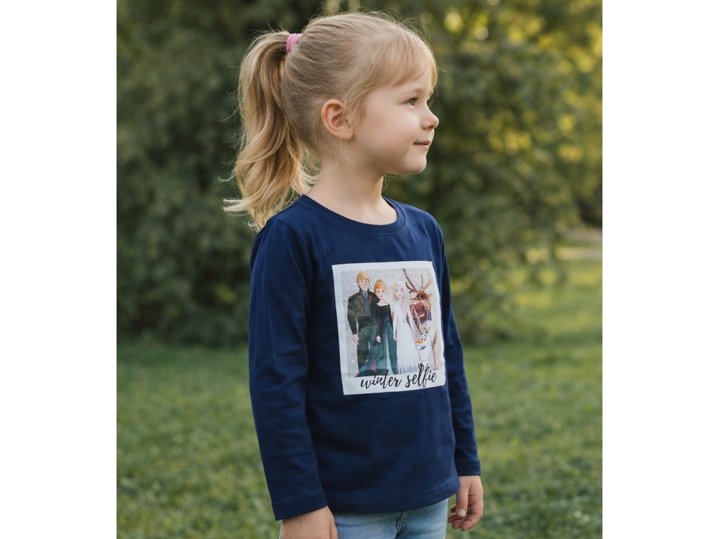 Dívčí tričko FROZEN selfie dlouhý rukáv tmavě modré