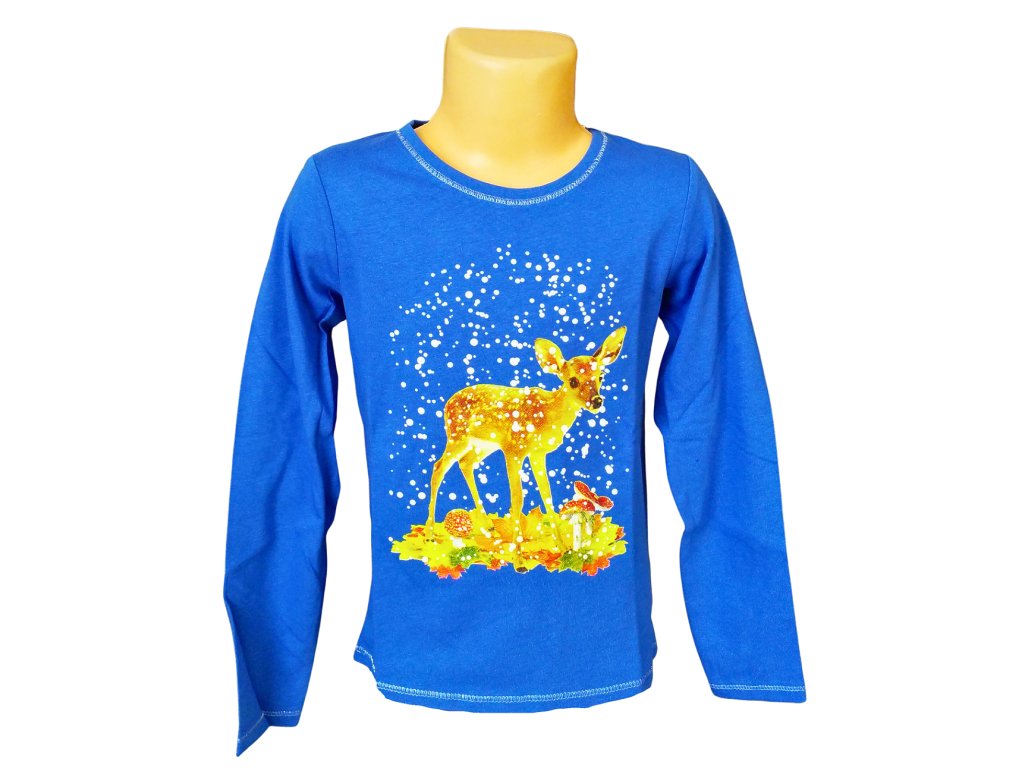 Bavlněné tričko s dlouhým rukávem a nádherným roztomilým motivem malého srnečka. Tričko je krásně pružné, barvy jsou výrazné a syté.