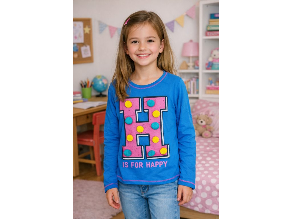 Dívčí tričko LEMON BERET s bambulkami dlouhý rukáv modré