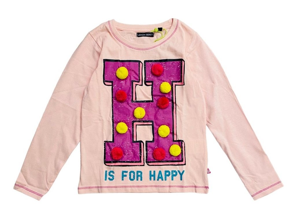 Dívčí tričko LEMON BERET s bambulkami dlouhý rukáv růžové