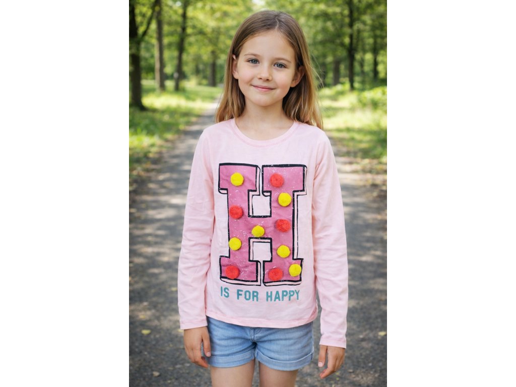 Dívčí tričko LEMON BERET s bambulkami dlouhý rukáv růžové