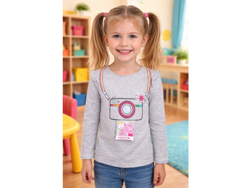 Dívčí tričko PEPPA PIG foťák dlouhý rukáv šedé