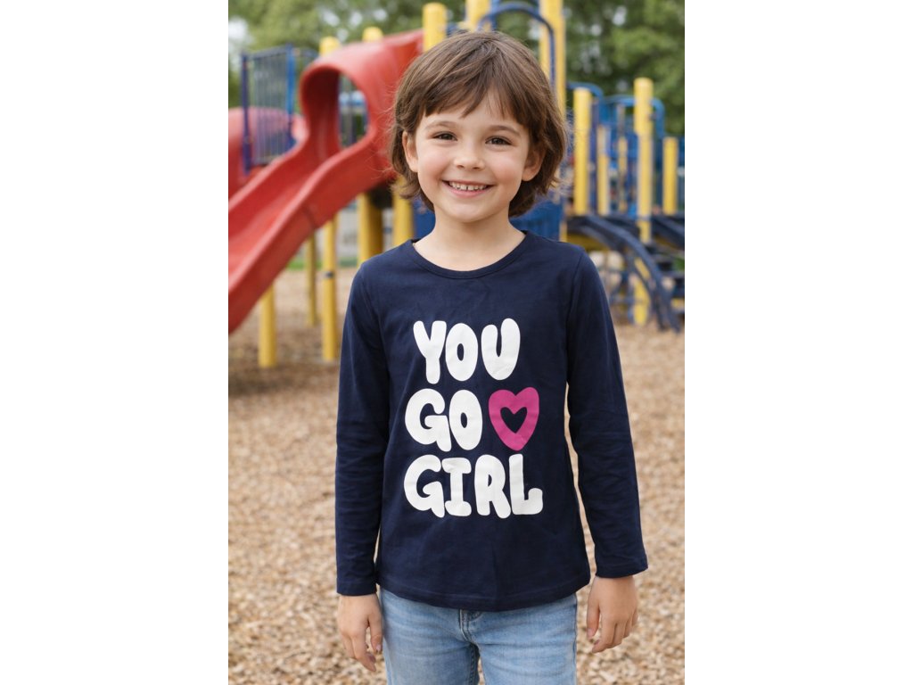 Dívčí tričko VENERE you go girl dlouhý rukáv temně modré