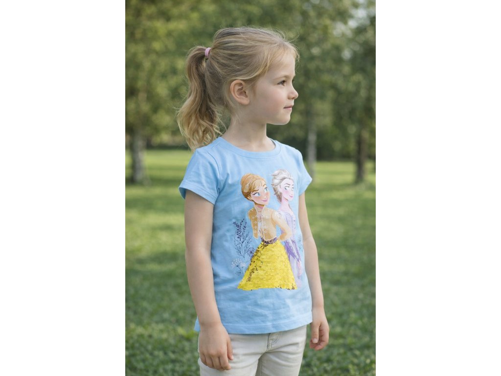 /Krásné dívčí tričko s princeznami Annou a Elsou a měnícími flitry.