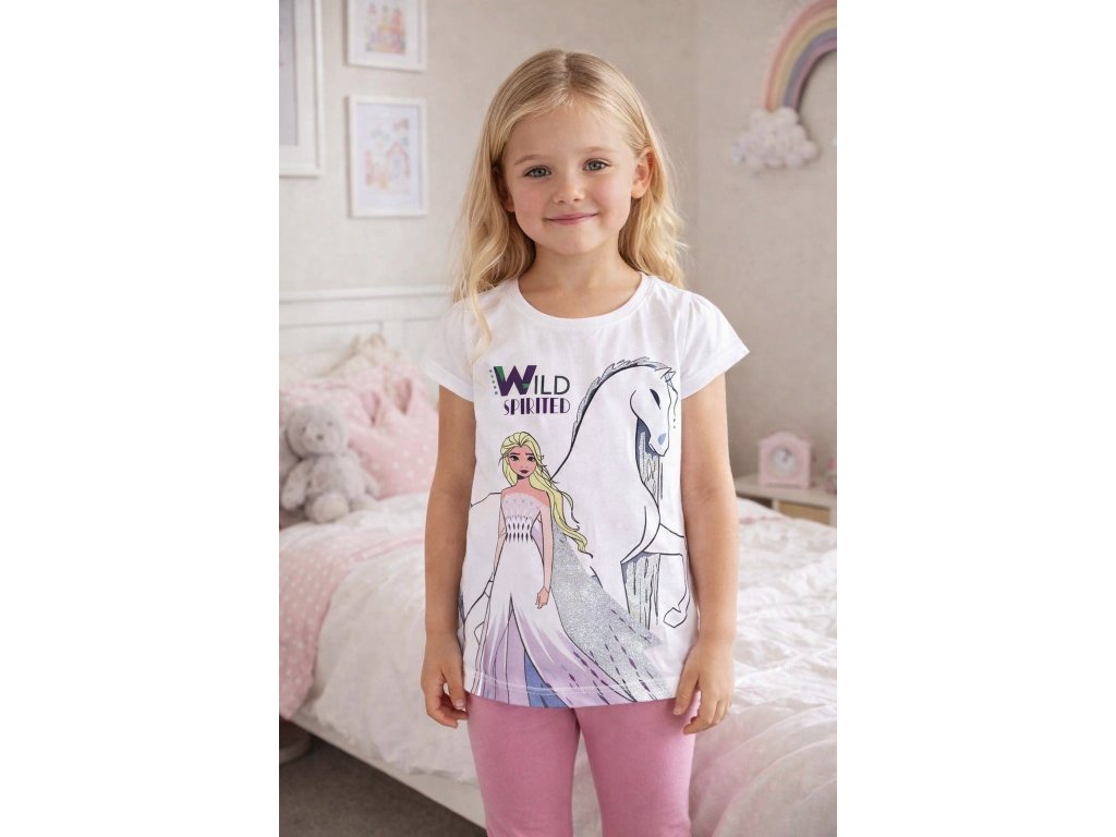 Dívčí tričko FROZEN ELSA se třpytkami krátký rukáv bílé