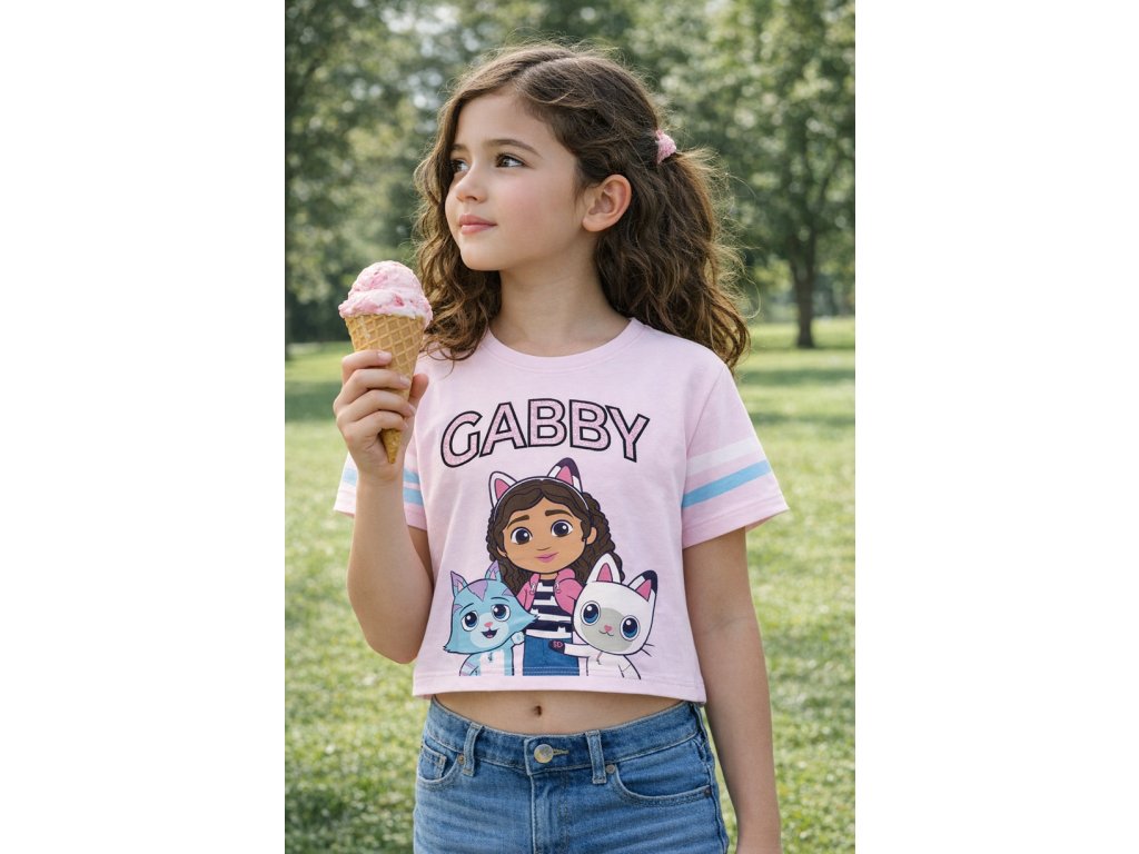Dívčí tričko s krátkým rukávem a motivem Gábinin kouzelný domek.