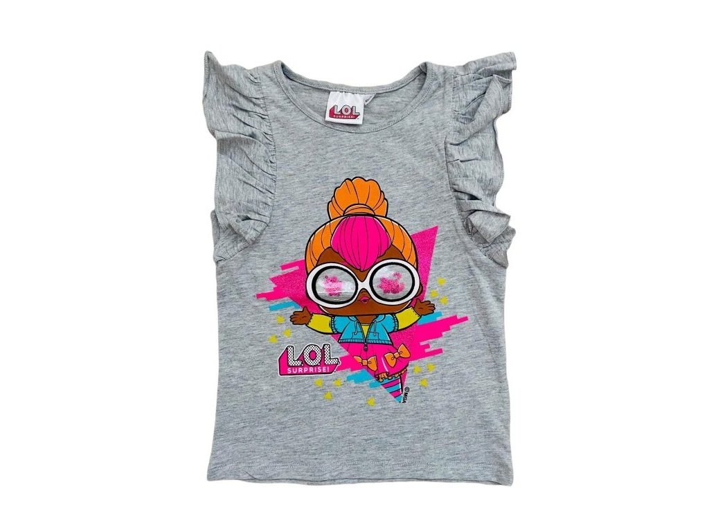 Dívčí tričko L.O.L. krátký rukáv volánový šedé