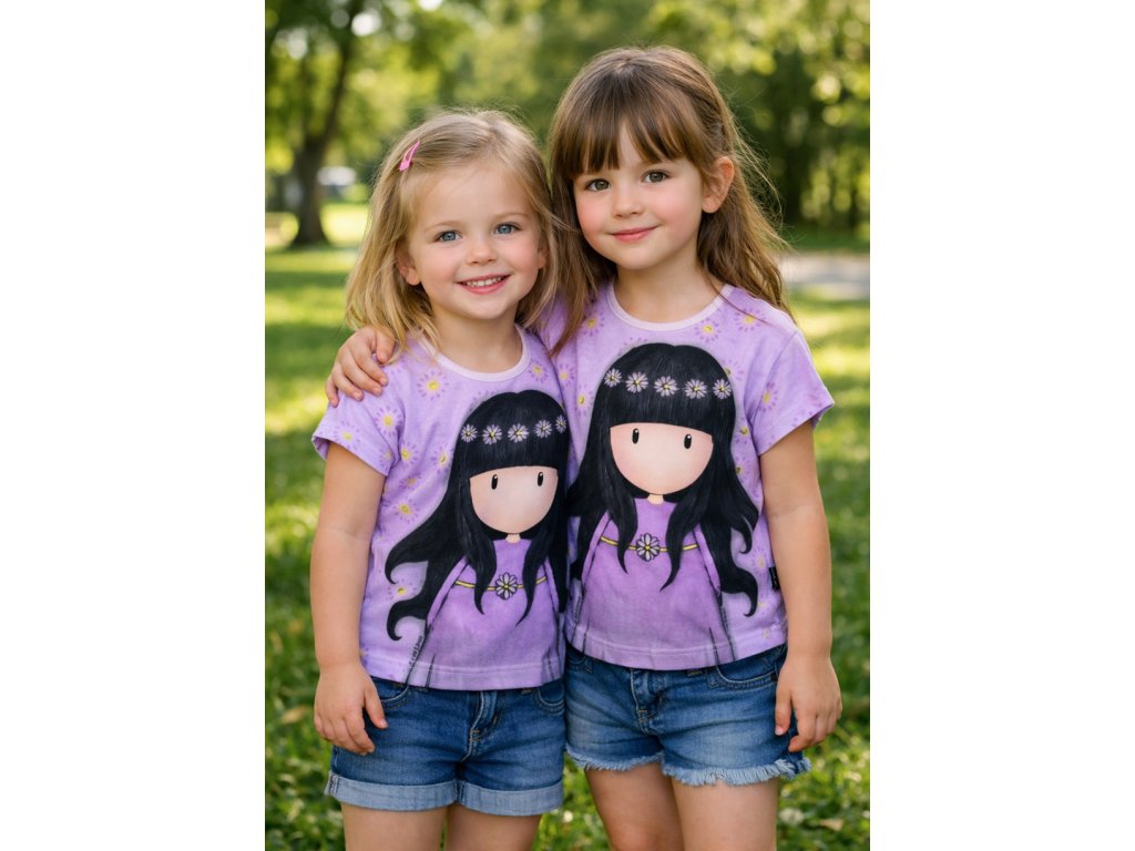 Krásné dívčí tričko s oblíbeným motivem panenky Santoro. Tričko je ve 2 provedeních - bílá a růžová zadní část. Motiv je celobavlněný.