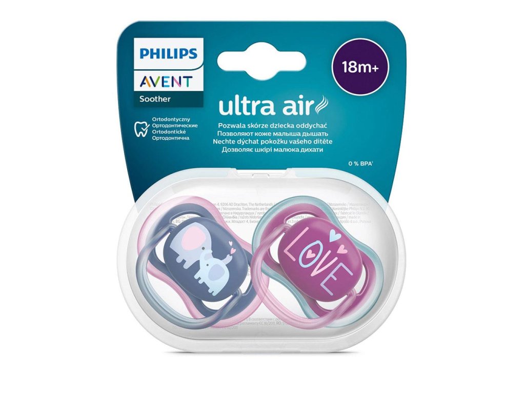 Šidítko Avent Ultra air 2ks pro holky +18 m slon