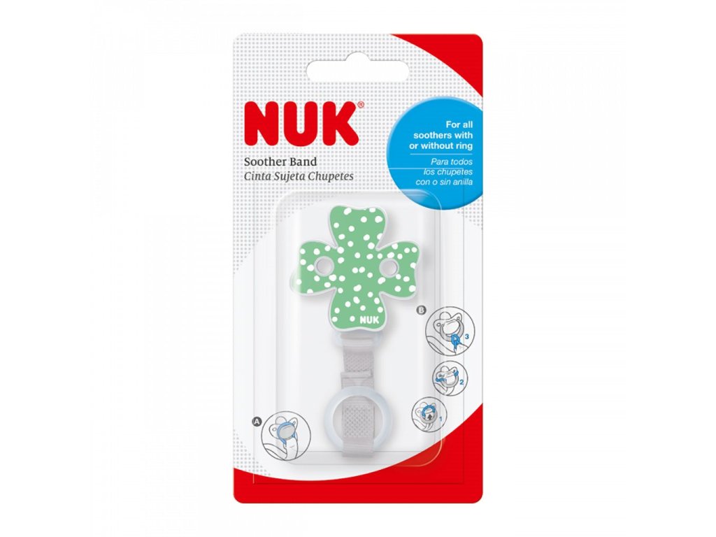 Veselá, barevná stužka na dudlík NUK s flexibilním kroužkem. Díky sponě dudlík nespadne na zem a nezašpiní se a neztratí se. Má snadné použití a je vyrobena tak, aby se dala připnout k dětskému oblečení. Určeno pro děti od prvních dnů života. Stužka je vhodná i na dudlíky bez kroužku díky natahovacímu silikonovému kroužku. Systém klipu je bez ostrých hran pro otevírání a zavírání jednou rukou.