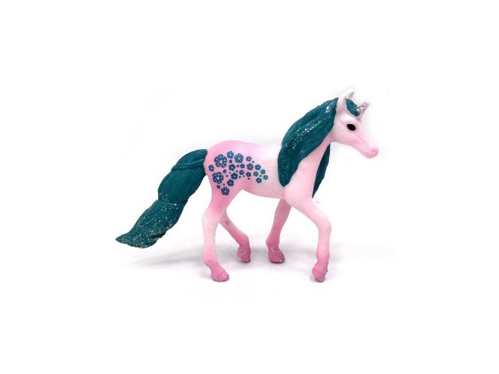 Figurka Jednorožec růžový s glitry. Velikost 10,5 cm.