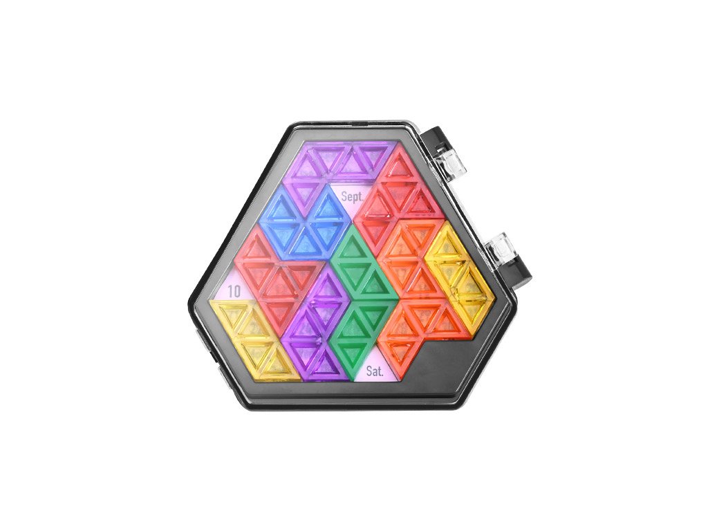 Tangram hlavolam. Velikost 10 cm. Obsahuje šablony na poskládání různých obrazců a konkrétních dat (den matek, Valentýn atd). Pokuste se sestavit dílky tak, aby šlo vidět pouze konkrétní datum a den v týdnu.