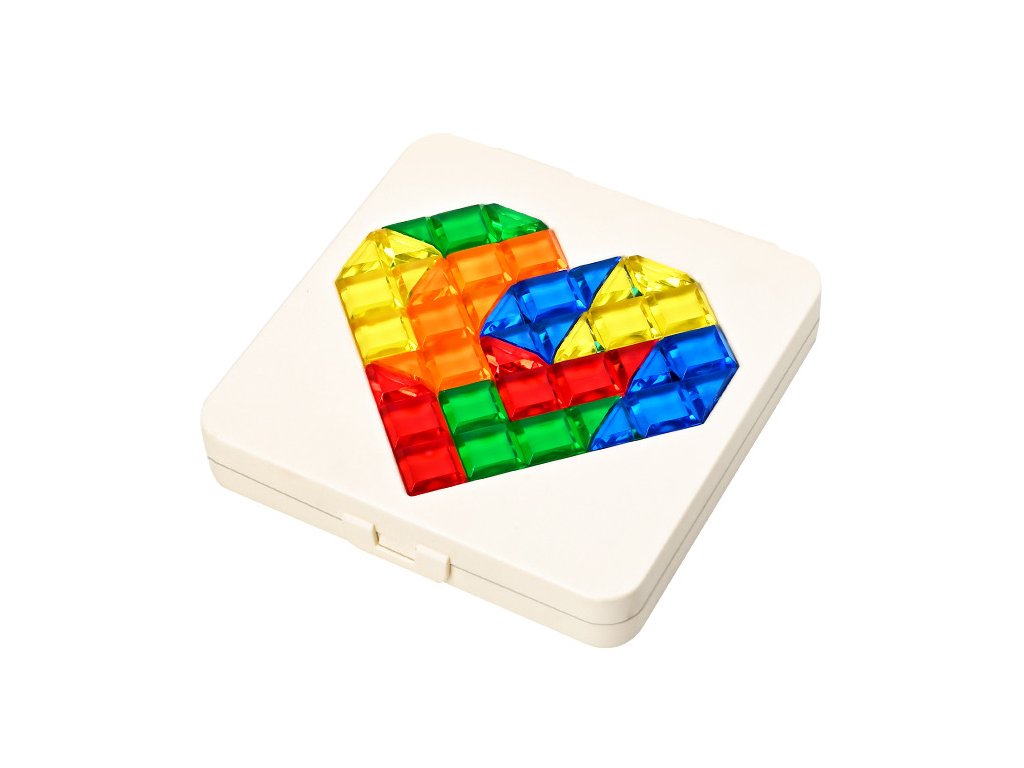 Tangram hlavolam srdce. Velikost 12cm. Obsahuje dvě hrací pole ve tvaru srdce a obdélníku.
