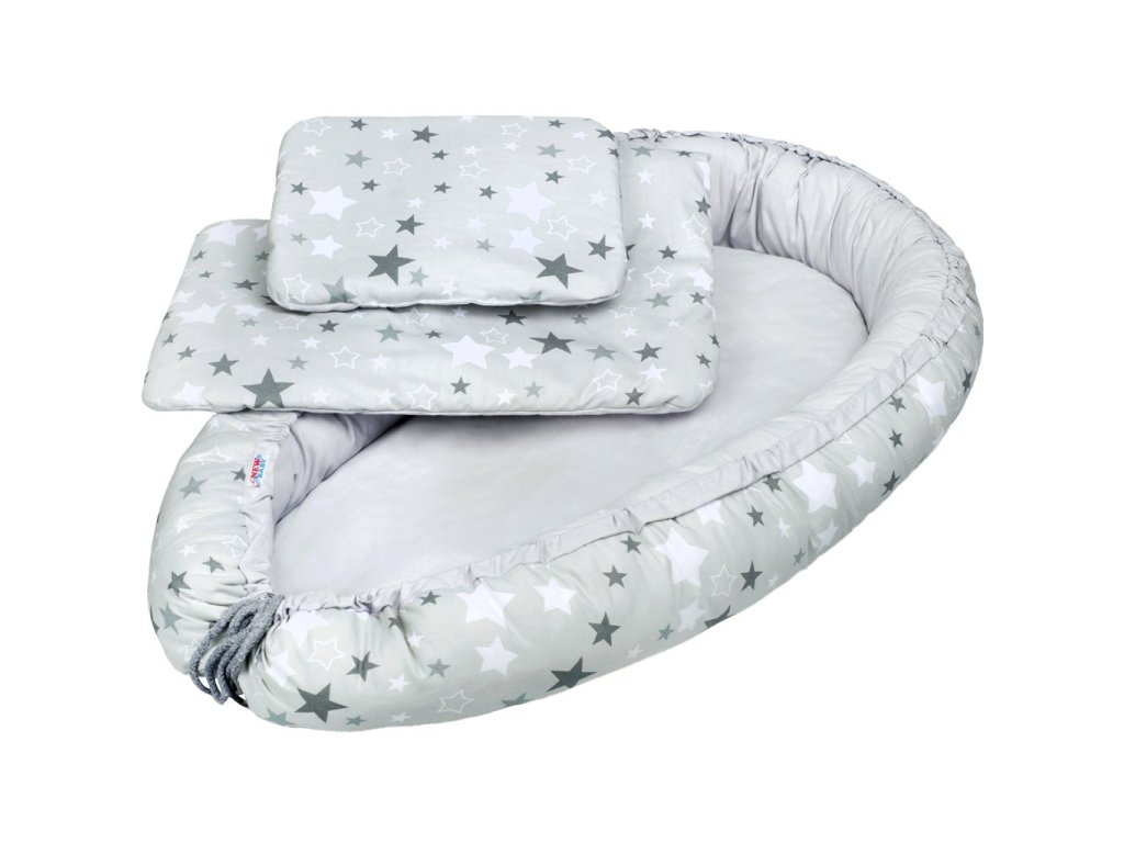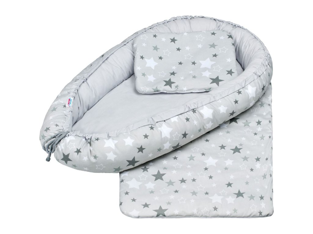 Luxusní hnízdečko s peřinkami pro miminko New Baby bílo-šedé hvězdičky