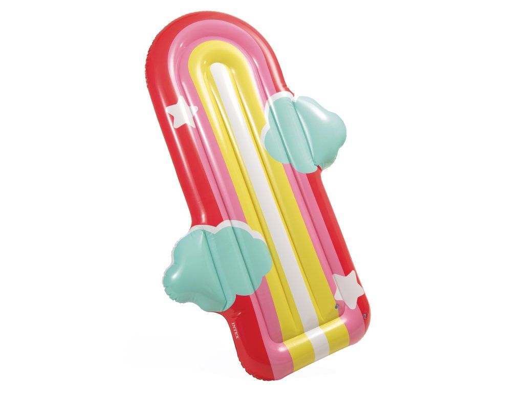 Barevné nafukovací lehátko ve stylu duhy rozzáří každé koupání a přinese dávku hravosti i pohodlí. Kombinace výrazných barev, jemných obláčků a hvězdiček vytváří originální vzhled, který si zamilují děti i dospělí. Tvar lehátka je navržen tak, aby poskytoval stabilní oporu těla při relaxaci na vodě.