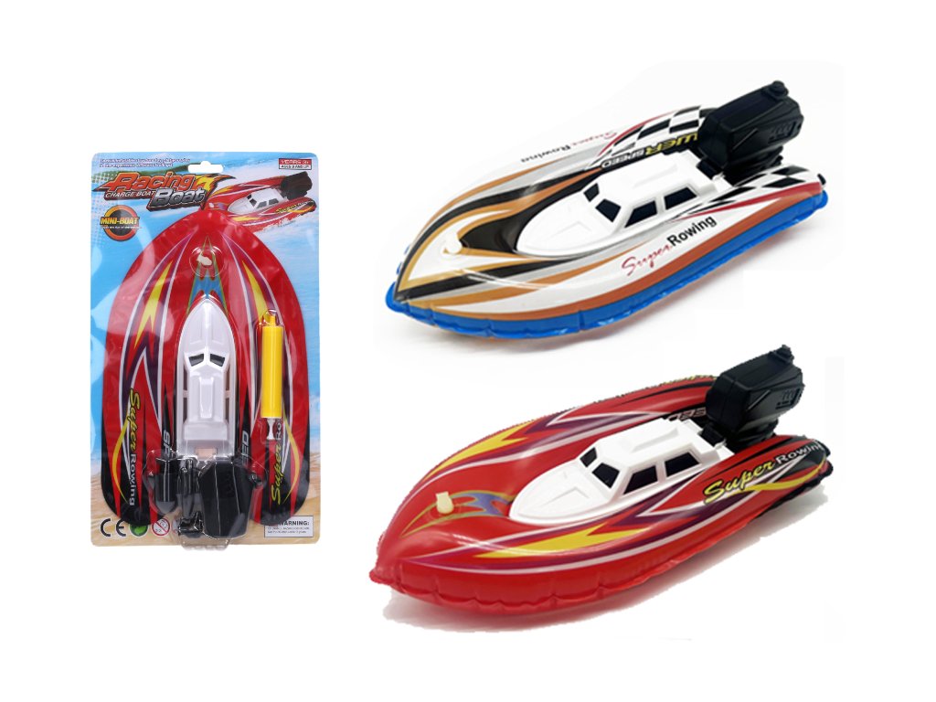 Člun nafukovací. Rozměry 21,5x3x37 cm. Součástí pumpa.