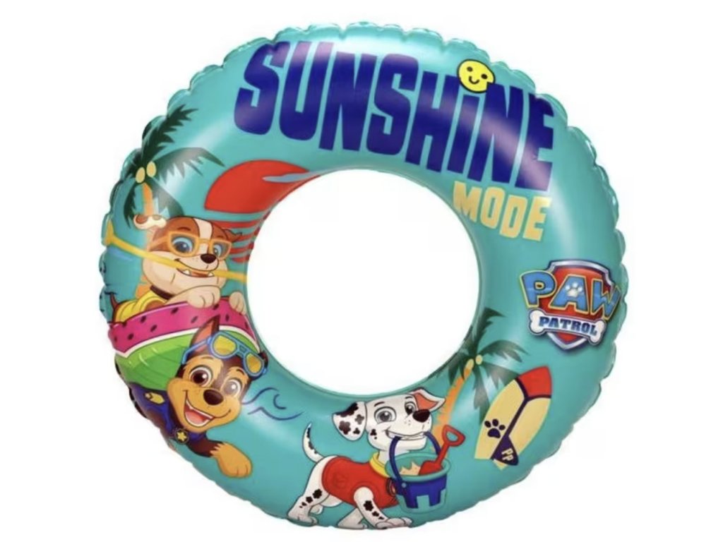 Kruh má atraktivní letní motiv v tyrkysové barvě s nápisem Sunshine Mode a obrázky oblíbených postaviček Paw Patrol, jako jsou Chase, Marshall nebo Rubble. Na kruhu nechybí ani surf a tropické motivy, které navodí prázdninovou atmosféru.