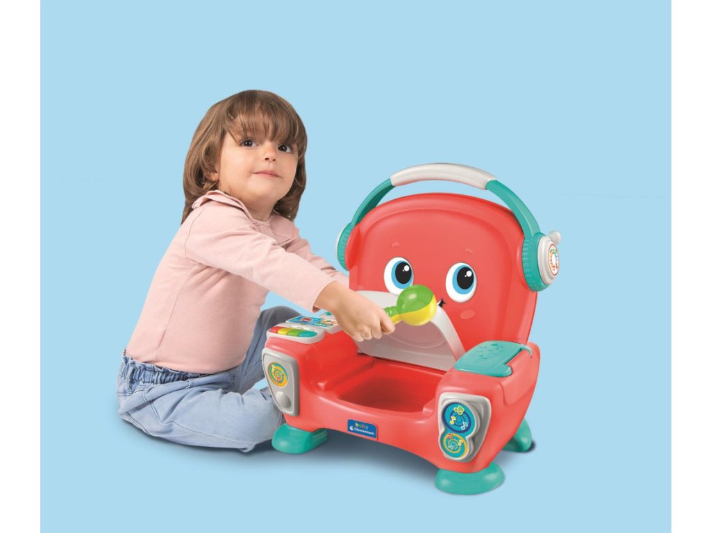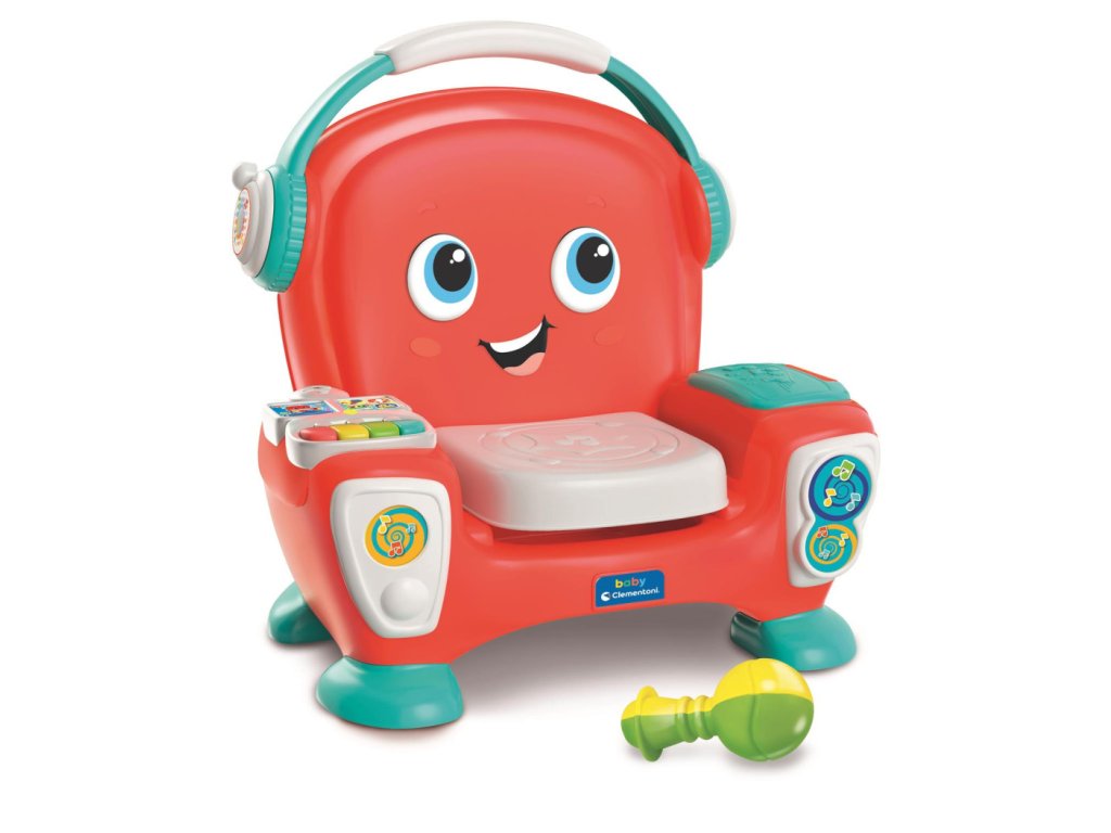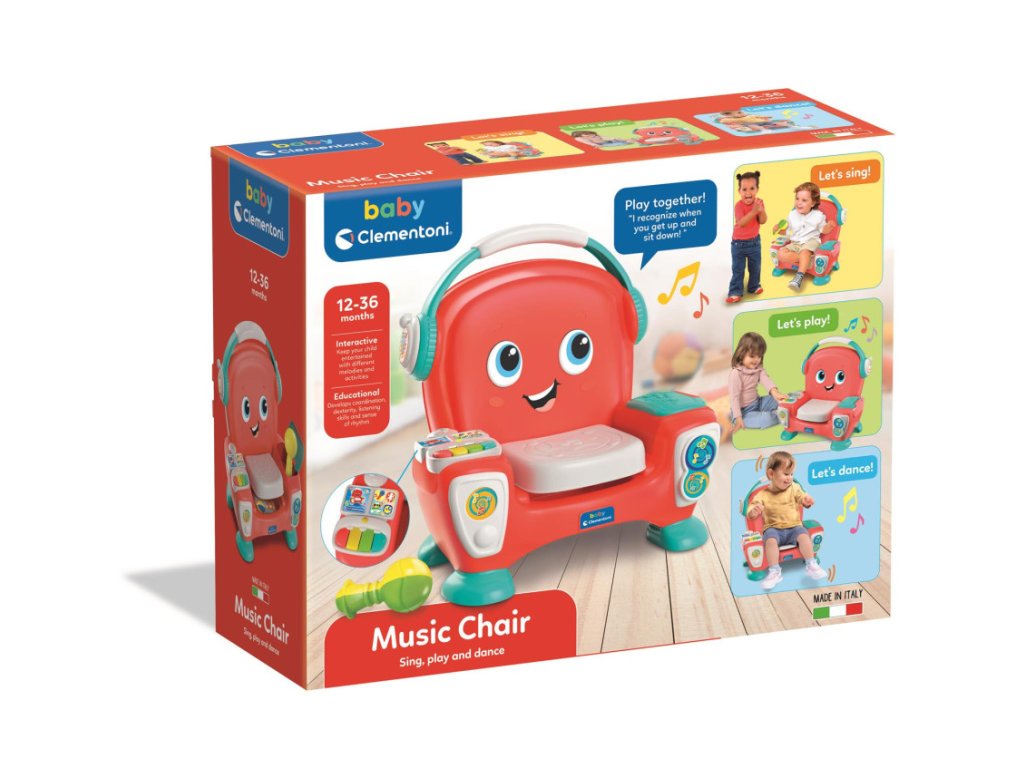 Clementoni Music Chair je interaktivní hračka navržená pro děti od 12 do 36 měsíců. Křesílko reaguje na pohyb dítěte a nabízí různé hudební i hravé aktivity, které podporují rozvoj motoriky a smyslového vnímání.