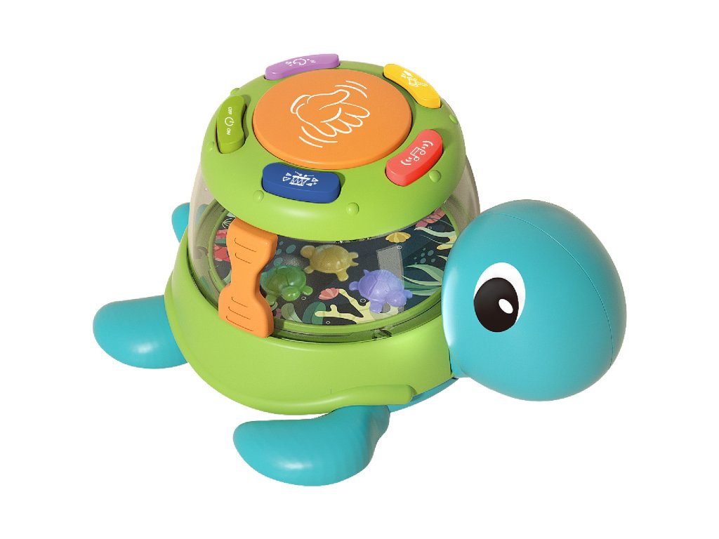 Želva bubínek s efekty 15 cm. Velikost 15x12x7,5 cm. Želva má volná kola.