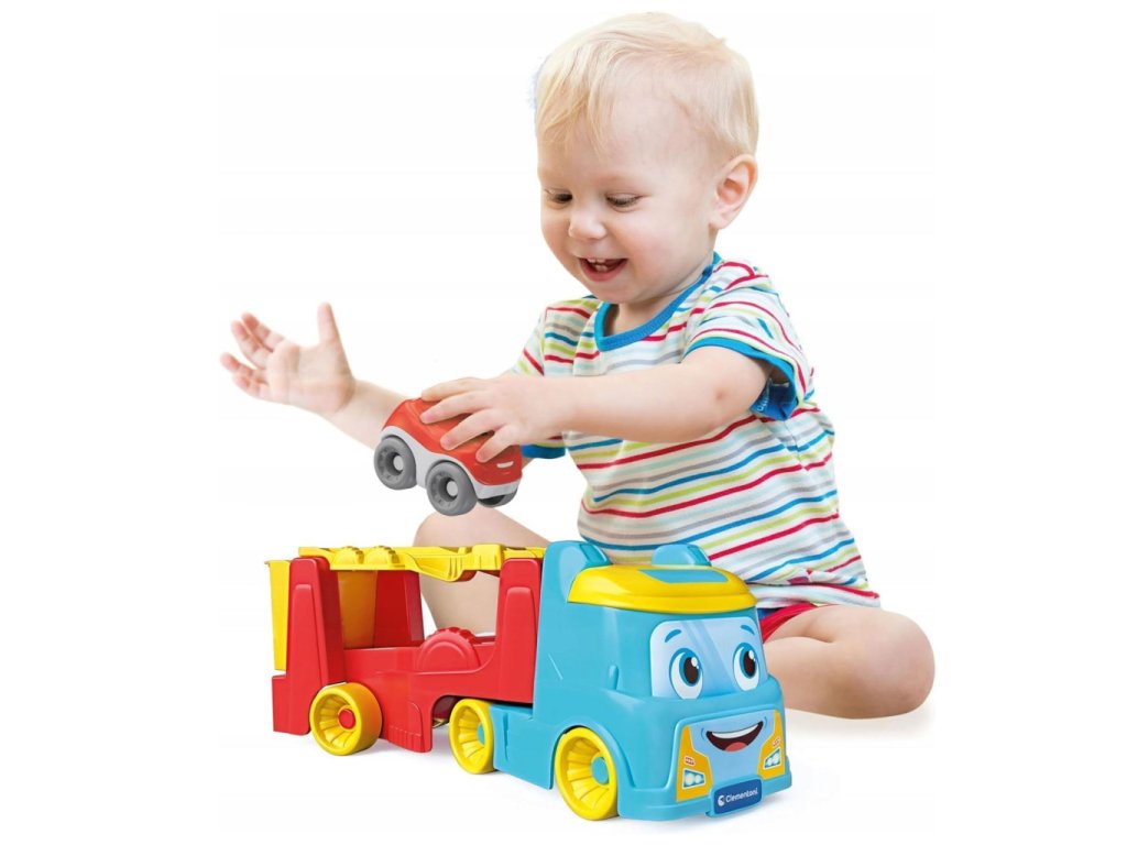 Součástí balení je malé autíčko, které perfektně zapadá do kamionu. Hračka je navržena tak, aby podporovala rozvoj koordinace ruka–oko a jemné motoriky, a zároveň děti přirozeně učila objevovat pohyb a příčinu reakce.