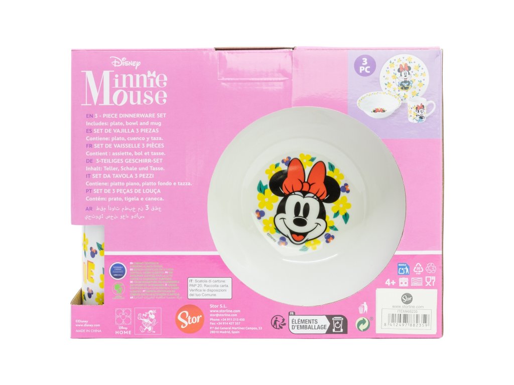 S myškou Minnie bude jídlo chutnat pohádkově. Keramický jídelní set pro holčičky je plný barviček a skládá se z mělkého talířku, mističky a hrnečku, to vše je baleno do kartonové dárkové krabičky. Dětskou sad u keramického nádobí si děti zamilují.