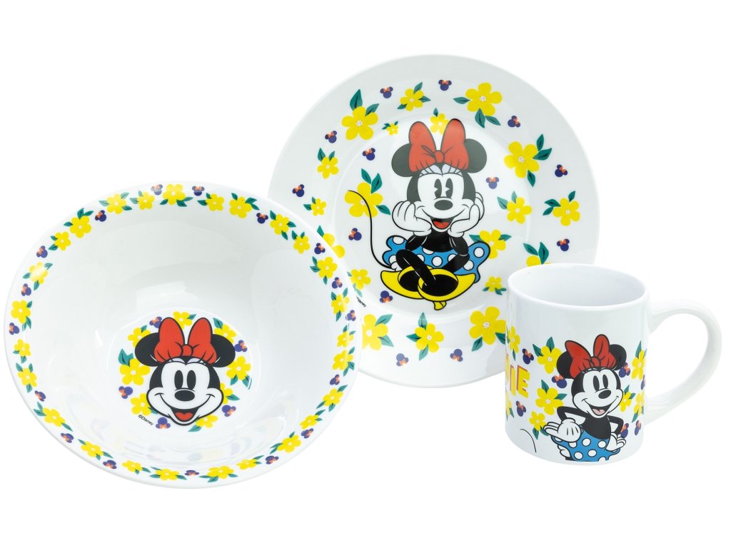 Dětská jídelní keramická sada MINNIE žluté kytičky 3dílná