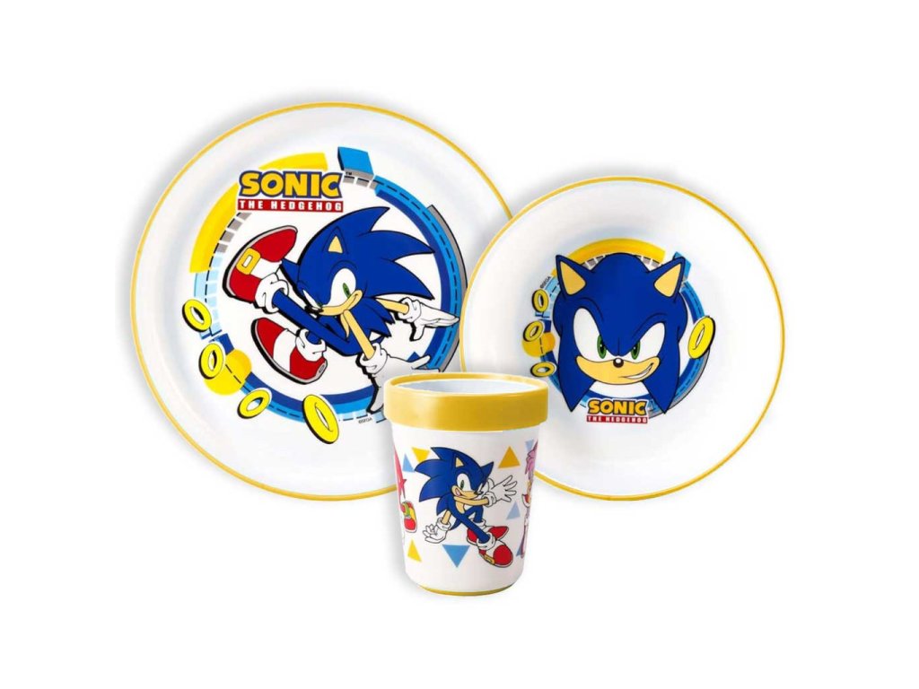 Praktický třídílný set s oblíbeným hrdinou Sonic the Hedgehog je ideální pro kluky i holky. Díky odolnému a nerozbitnému plastu si s případnými pády nemusíte dělat starosti – nádobí vydrží každodenní dětské dobrodružství.