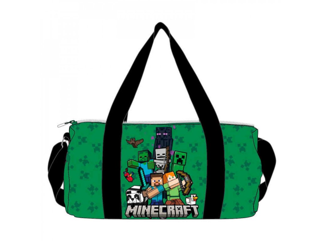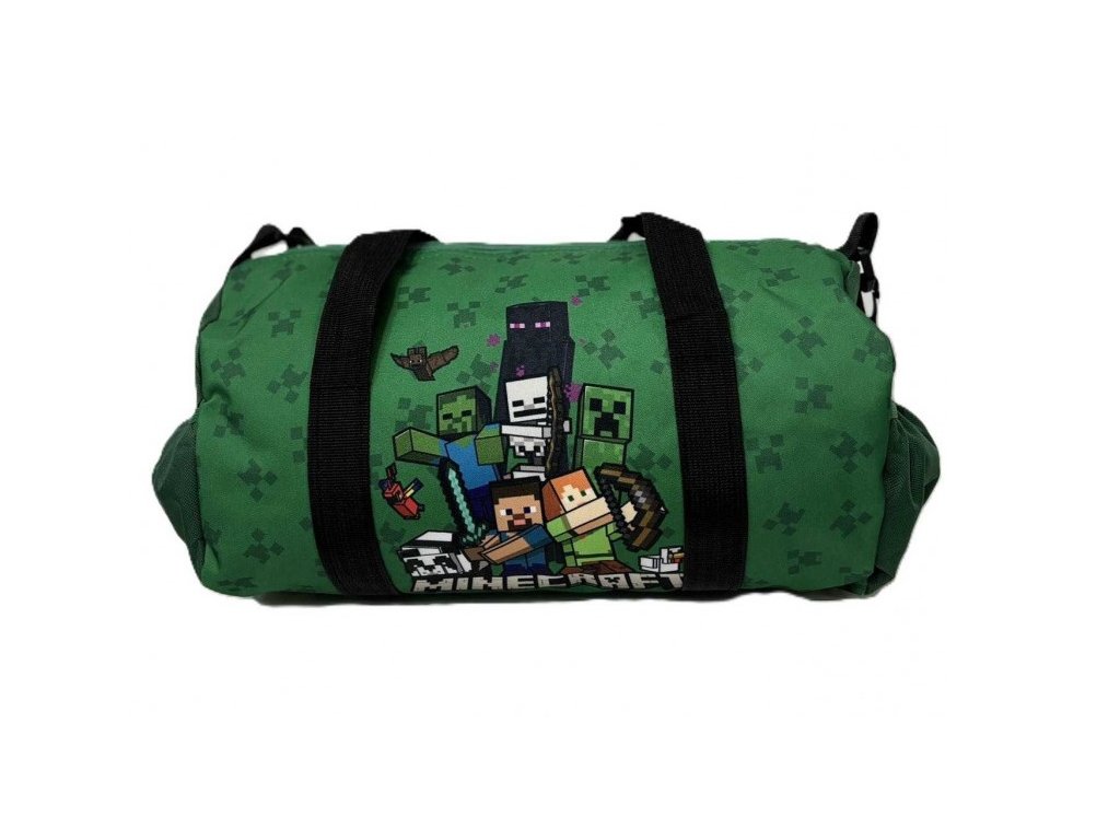 Prostorná cestovní taška Minecraft je výborný pomocník nejen na cesty, ale i na sport. Pojme vše potřebné včetně sportovní obuvi, dresu i svačiny. Taška má zapínání na zip, dvě ucha pro nošení v ruce i odepínací popruh přes rameno s přezkou s regulací délky. Na bocích jsou i menší kapsičky na drobnosti.