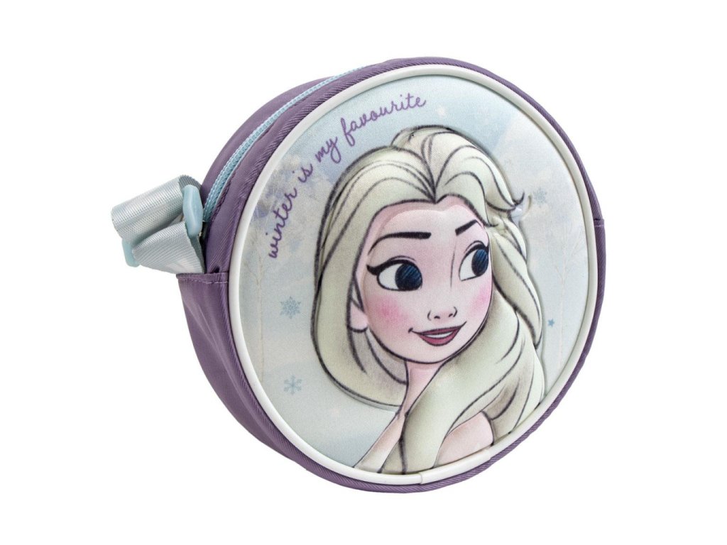 Kulatá dívčí kabelka crossbody Frozen Elsa – fialová Stylová kulatá dívčí kabelka Frozen Elsa je perfektním doplňkem pro všechny malé princezny, které milují pohádku Ledové...