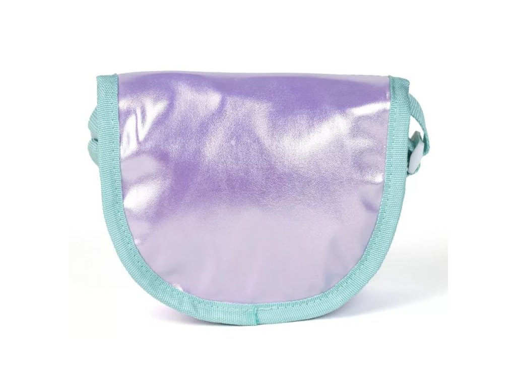 Dívčí kabelka s princeznou Elsou v nádherném tyrkysovofialovém provedení s třpytivým efektem. Kabelka má přezku přes rameno s regulací délky, vrchní klopu se zapínáním na suchý zip a uvnitř jednu velkou kapsu. Přední klopa je krásně třpytivá a to se holčičkám vždy moc líbí.