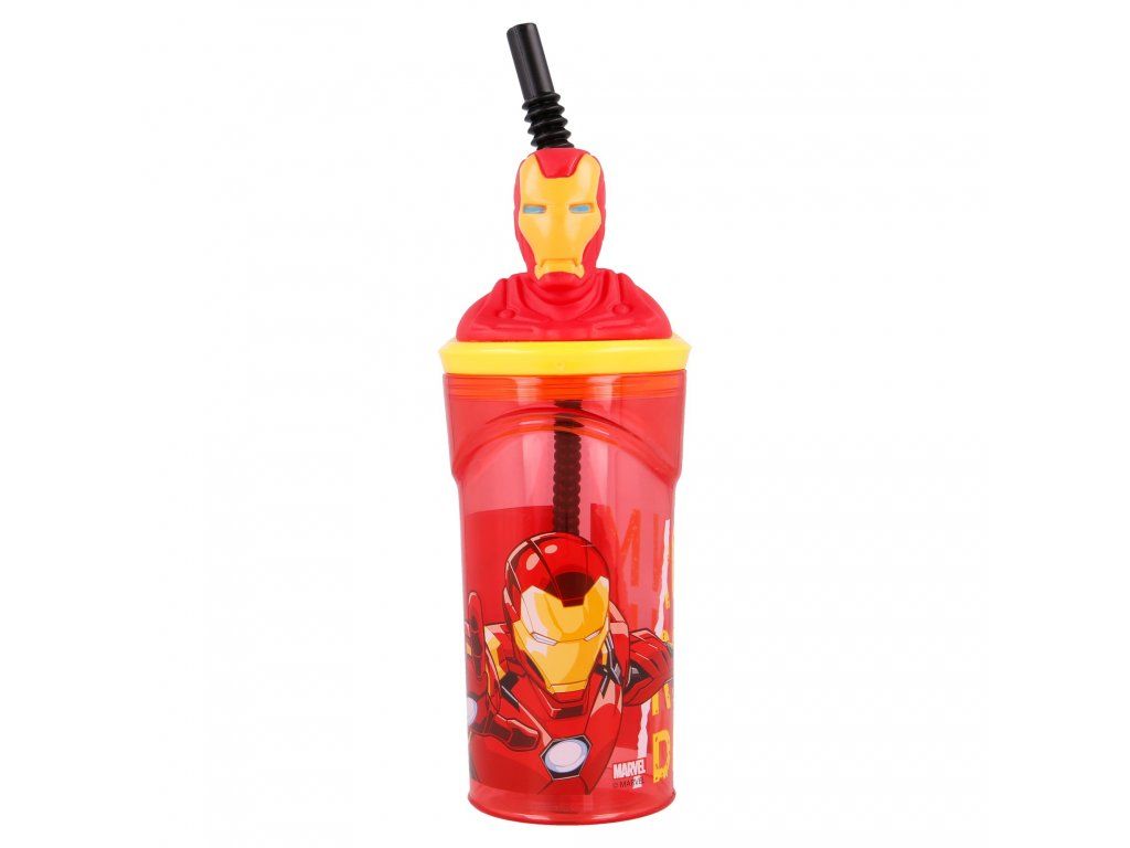 3D lahev na pití AVENGERS IRON MAN s brčkem